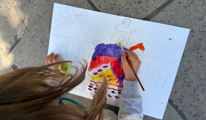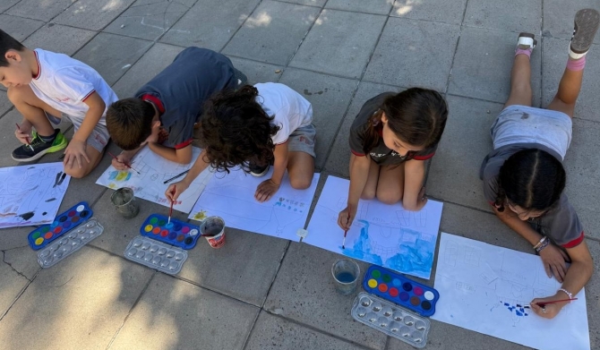 Los alumnos de 1º del Nivel Primario salieron al parque a pintar con acuarelas