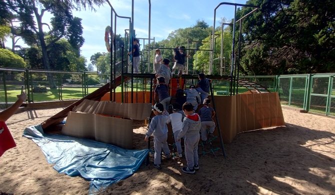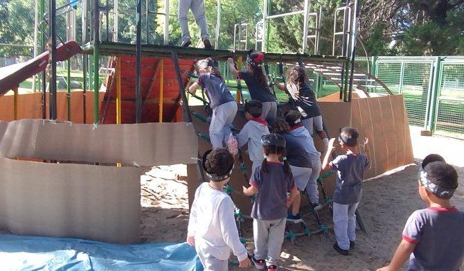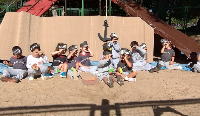 Continuando con la dramatización del cuento “El Pirata Malapata”, la trepadora de nuestro parque se convirtió en un “barco”, invitando a los niños y las niñas de las salas de 4 años a un viaje imaginario en búsqueda de tesoros escondidos.