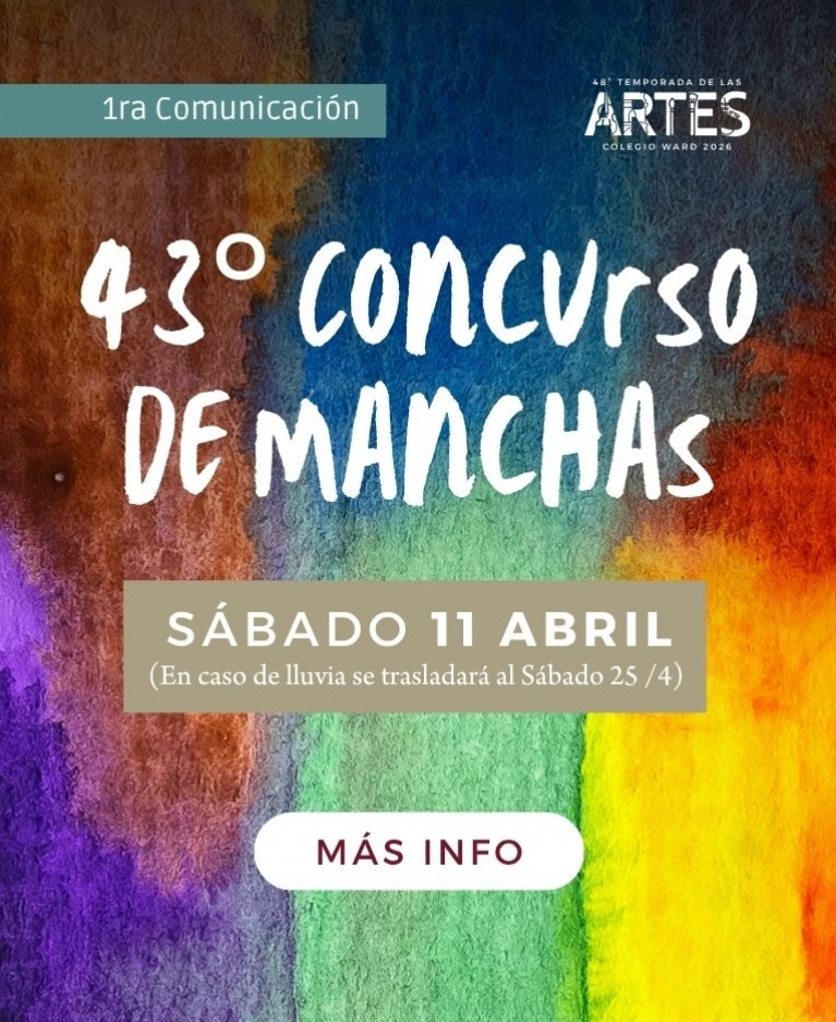 El sábado 11 de abril de 10 a 16 hs el Colegio Ward volverá a reunir a los amantes de la pintura para el 43º Concurso de Manchas, una actividad artística muy especial que el Colegio organiza para público de todas las edades.