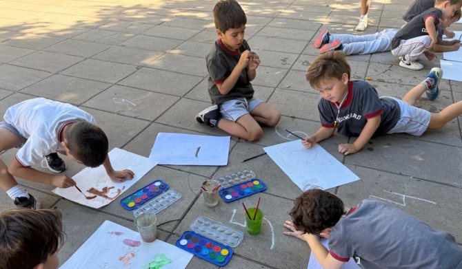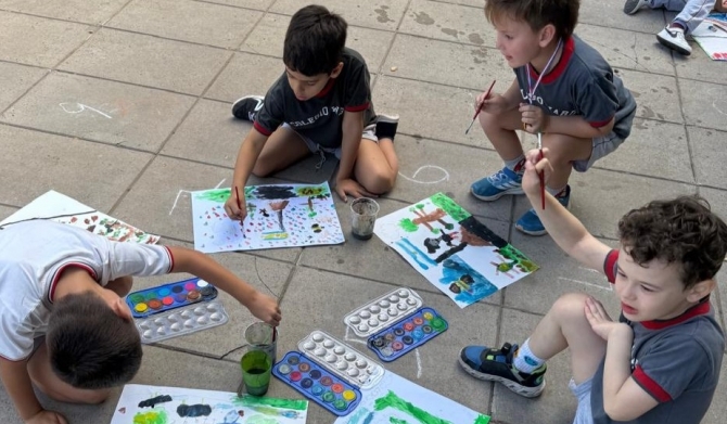 Los alumnos de 1º del Nivel Primario salieron al parque a pintar con acuarelas