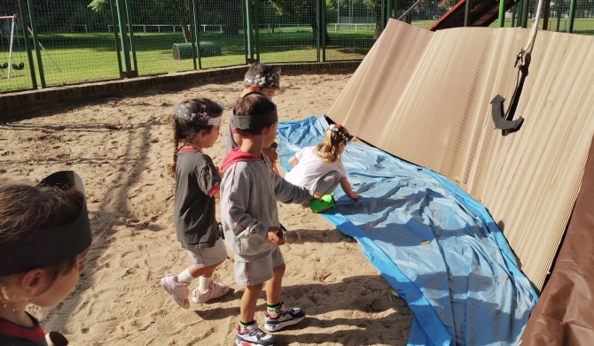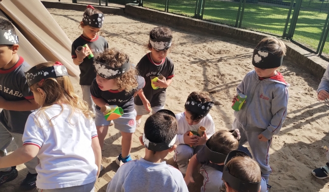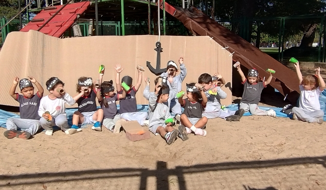 Continuando con la dramatización del cuento “El Pirata Malapata”, la trepadora de nuestro parque se convirtió en un “barco”, invitando a los niños y las niñas de las salas de 4 años a un viaje imaginario en búsqueda de tesoros escondidos.